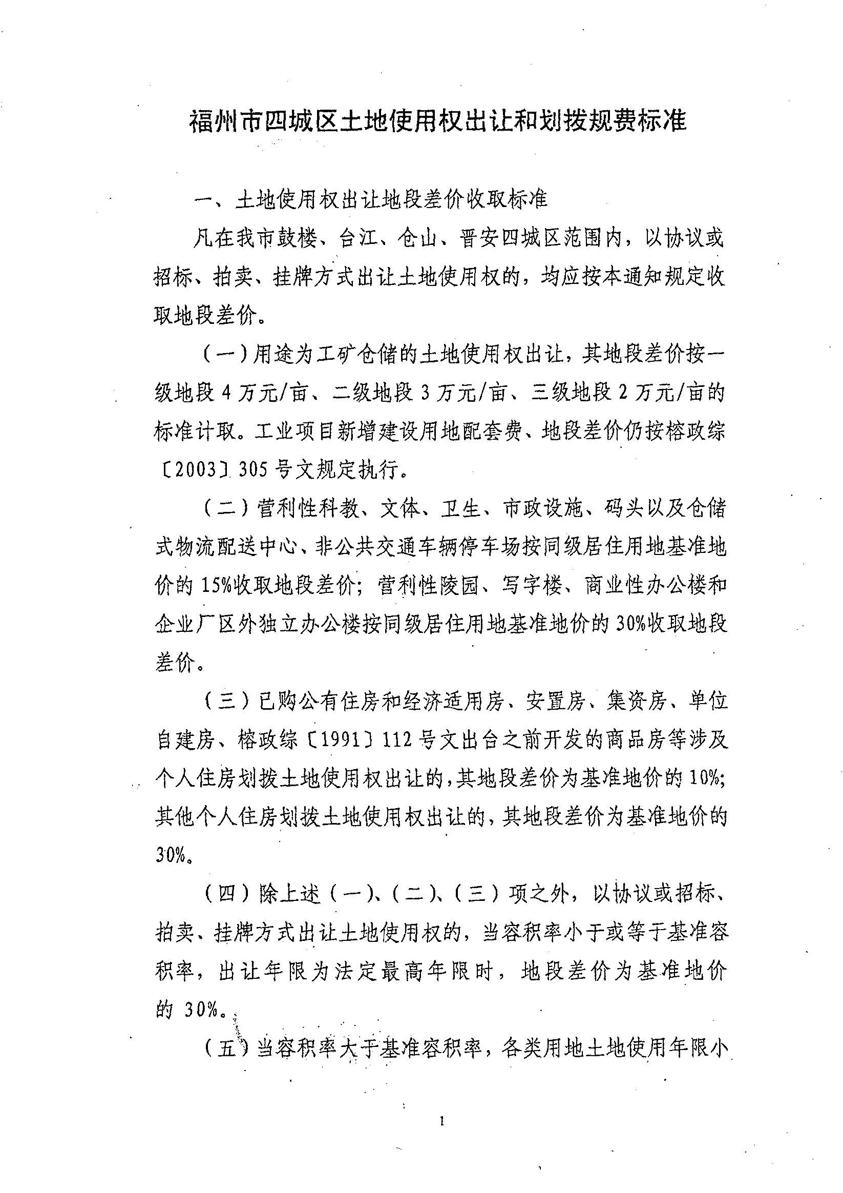 福州市人民政府关于印发福州市四城区土地使用权出让和划拨规费标准的通知